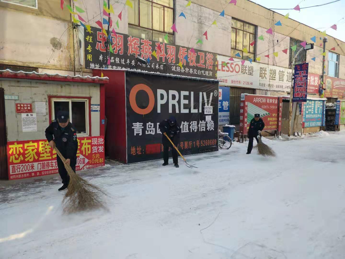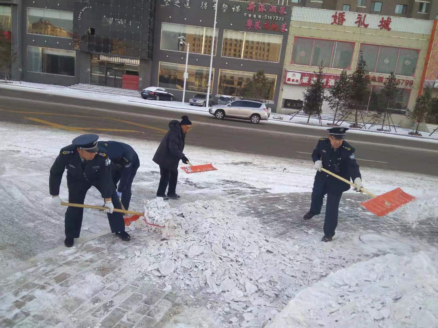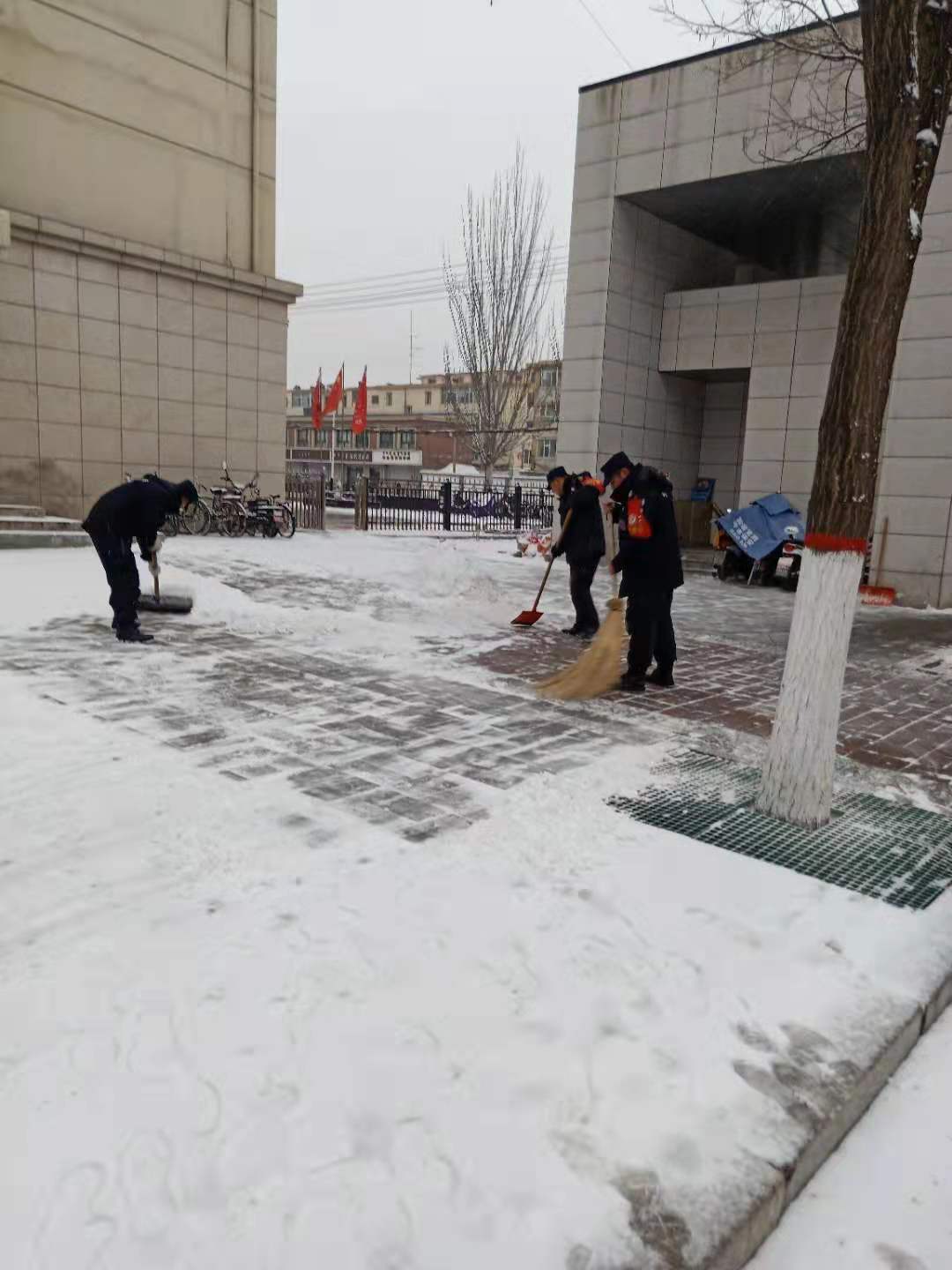 2019年入冬以來第一場(chǎng)雪飄灑而至,厚厚的積雪為出行帶來了諸多不便,為方便客戶單位人員出行,呼和浩特市保安服務(wù)公司駐勤各中隊(duì)、班組紛紛發(fā)動(dòng)保安員冒著風(fēng)雪和嚴(yán)寒,揮舞鐵鍬、掃把、各種鏟雪、除雪工具,一起清掃駐勤單位的積雪堅(jiān)冰。