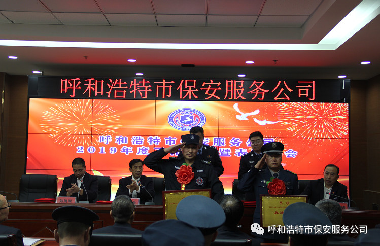2020年1月20日下午,呼和浩特市保安服務公司召開了2019年度工作總結暨表彰大會。呼市公安局保安管理支隊支隊長、市局駐保安公司工作組組長李利及分管保安公司工作的民警張文豹出席會議。